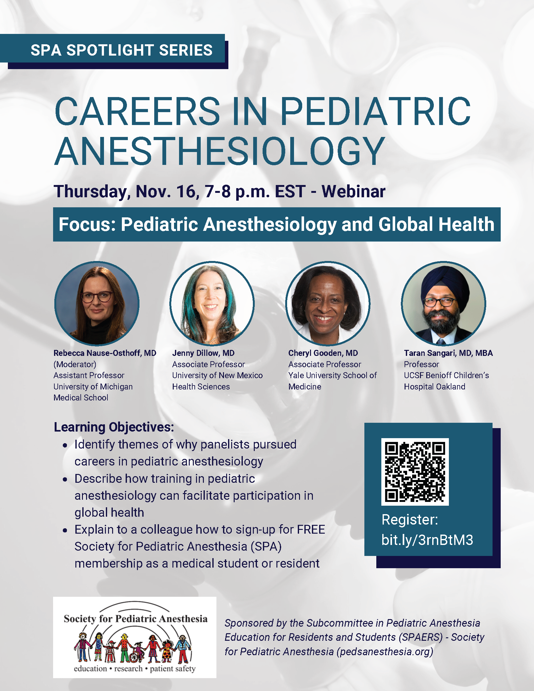 • Subcommittee in Pediatric Anesthesia Education for Residents and Students (SPAERS)